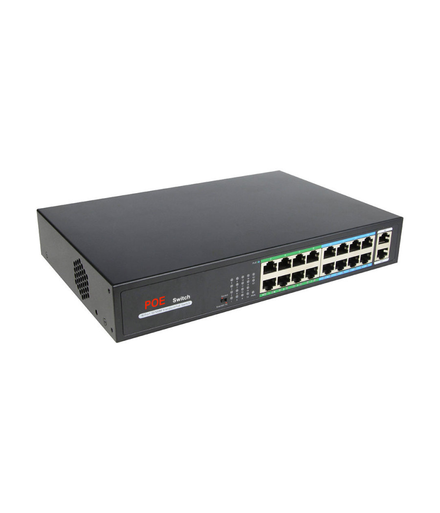Les 16 ports sont “downlink” : destinés à connecter des terminaux ou appareils finaux (ordinateurs, caméras, points d’accès Wi‑Fi, etc.).