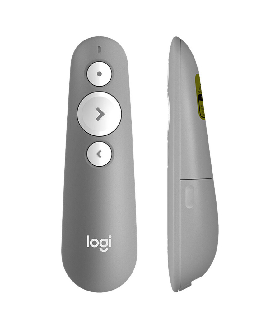 Logitech présente la télécommande R500, une télécommande de présentation prête à l’emploi qui vous permet de parcourir des diapositives et d’utiliser un laser jusqu’à 20 mètres de portée. Faites votre présentation avec aisance et confiance grâce à la conception à trois boutons caractéristique et au maintien confortable et sûr de la télécommande R500. Vous pouvez personnaliser les boutons, vérifier la longévité de la batterie et définir une minuterie à l’écran dans l’application Logitech Présentation.
