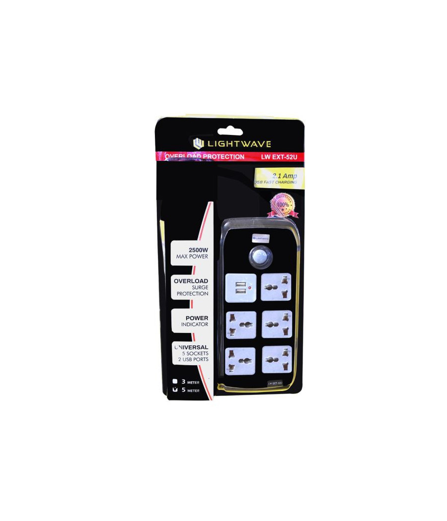 Avec ses 5 voies secteur + 2 ports USB, la Light Waves EXT-52U est la solution idéale pour centraliser vos connexions, recharger vos appareils et organiser efficacement vos installations électriques.